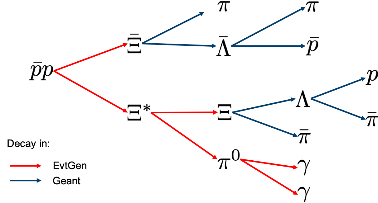 The following decay tree is taken as an example. It contains both charged and neutral final states as well as intermediate stages.
