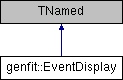 The EventDisplay class is a singelton used to visualize the events processed with Genfit. The event display uses the EVE event visualization package to visualize Tracks which are bundled in a vector and which form one event. The information about the tracks is supplied in Track objects. To use the event display, the geometry (TGeoManager)and magnetic field (FieldManager) have to be initialized and gApplication and gEve have to exist.