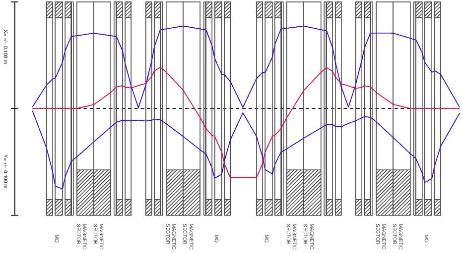 Note, for ion optical calculations not the iron length of the elements is used but the effective length (Leff), i.e. the B-field integrated along the path divided by the field in the middle of the element (B0).