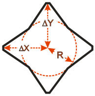 star shaped with an inner radius (R) of 7.0cm and an outer