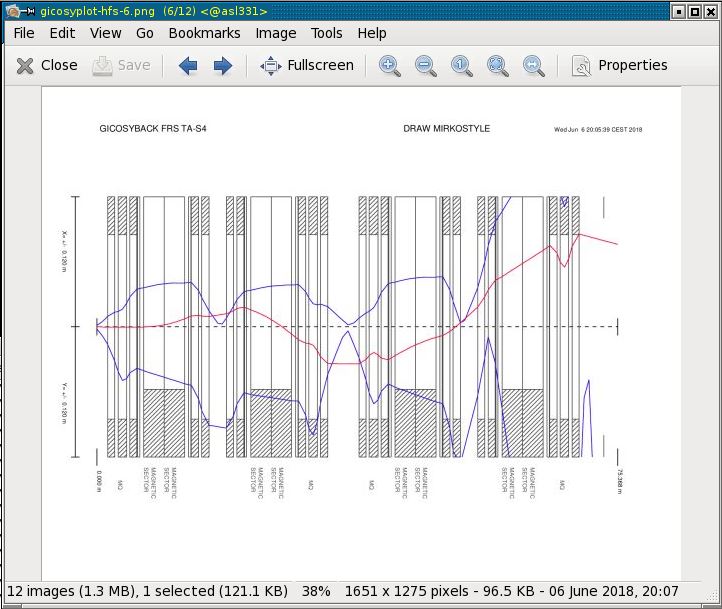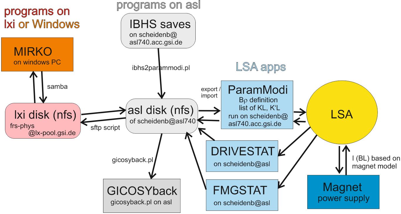 The program gicosyback.pl can be used to read the values from a ParamModi export file and to run a GICOSY calculation of the FRS (TA-S4) with these values. It consists of a Perl script running on accelerator linux (asl74x.acc.gsi.de).