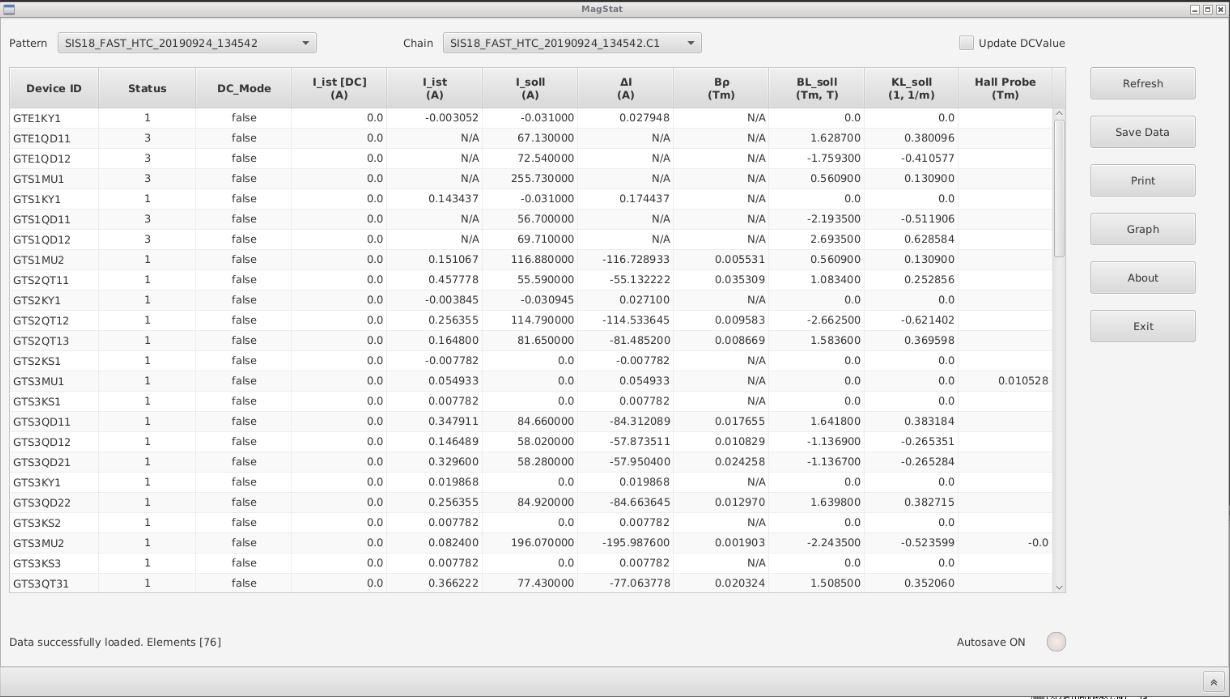 For a better overview on all FRS magnets MAGSTAT is used.