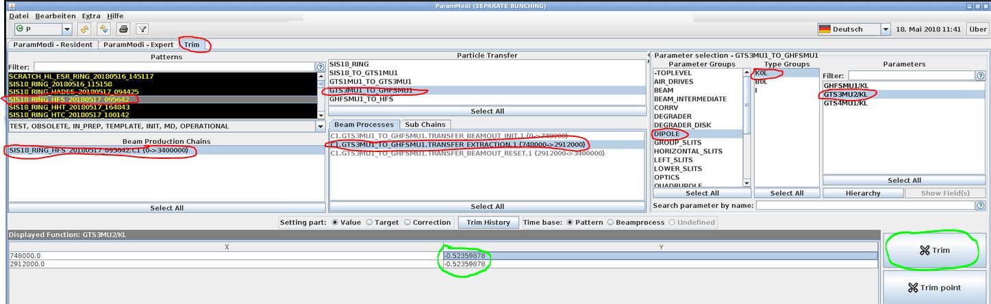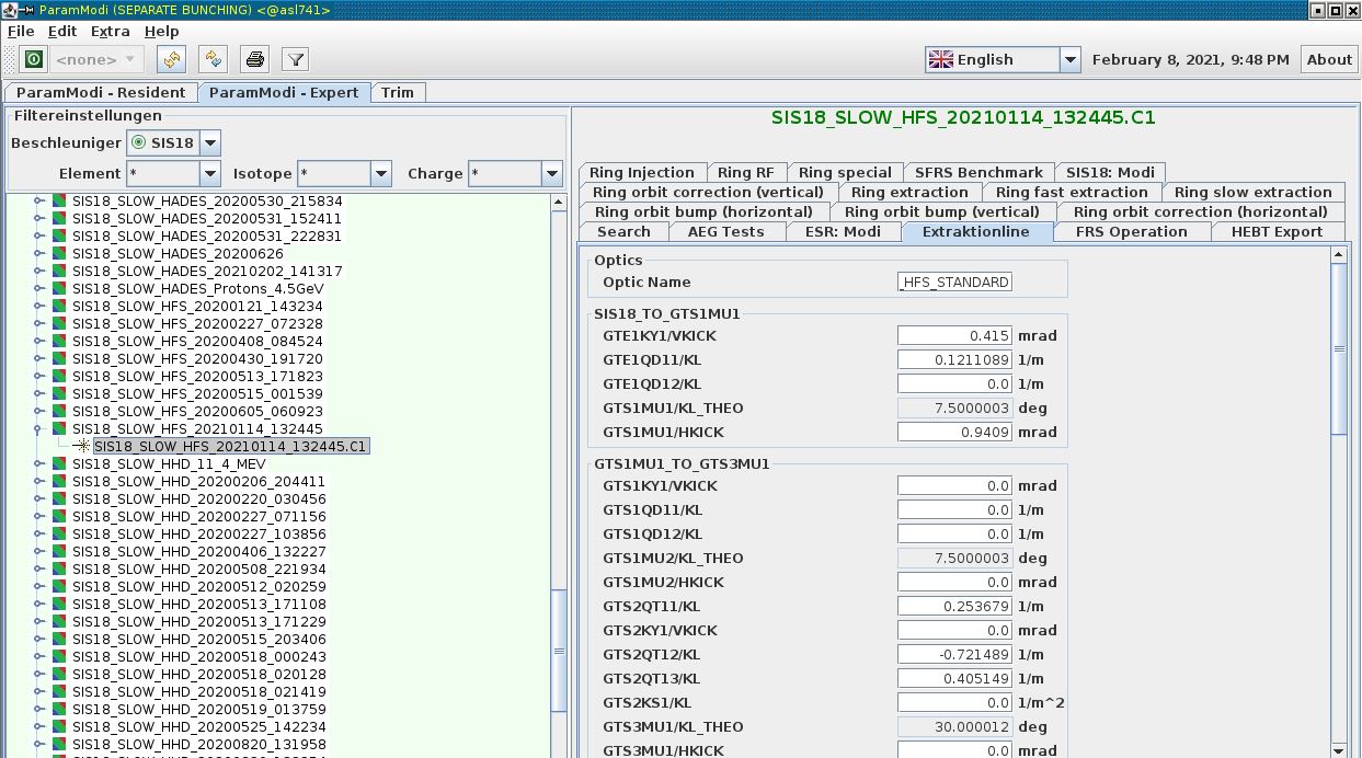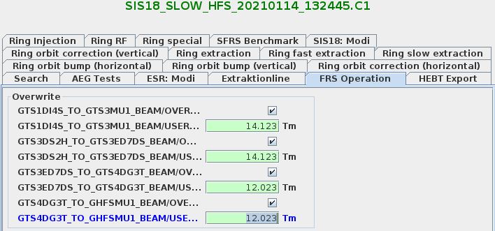 The app "ParamModi" is used to adjust FRS magnets.