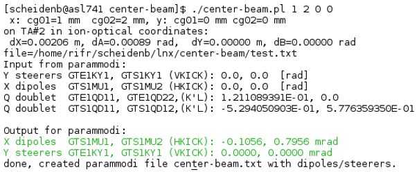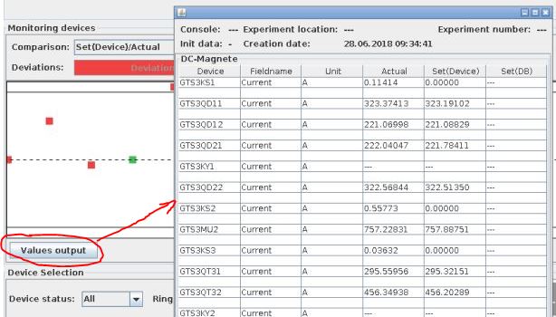 It displays the set and readout values value in BL/B'L KL/K'L, the