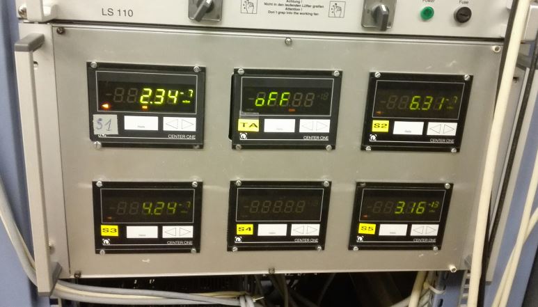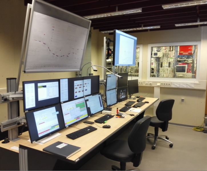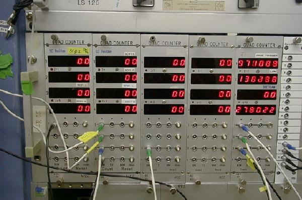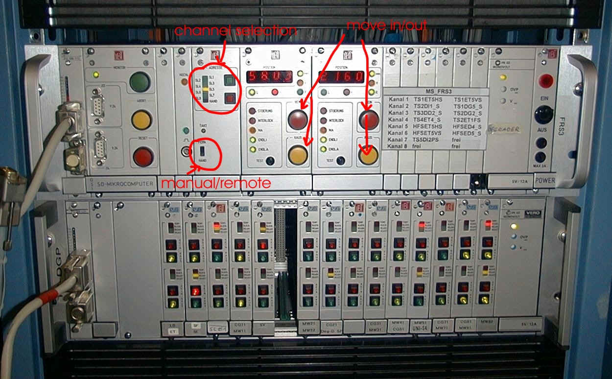 The FRS is controlled and monitored from the console in the FRS Messhütte. Test detectors offline and check computers and programs on the console. Test magnets by applying some current to them. Below: Operating console in Messhütte.