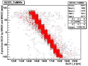 The position information (x) is taken from the MWPCs at S4. The