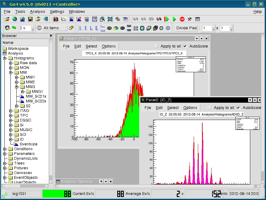 figure: Go4 example from Run120 file F0016, setting on 18Ne.