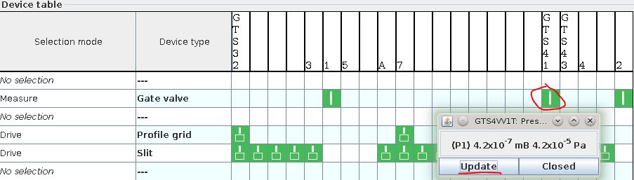 of accelerator and beamline devices used in this pattern.