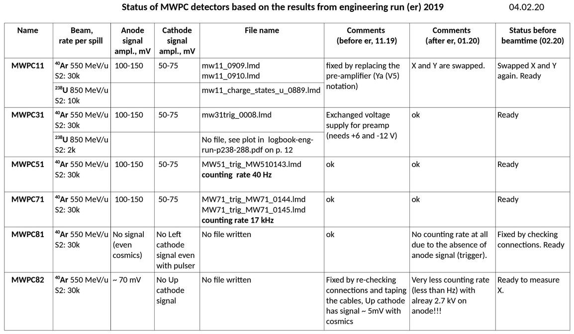The MWPCs are used in the FRS to measure x and y position in the focal planes. Standard are: